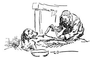 Gran’père understood dogs and knew that Pierrot was hurt, so as soon as he could get the dog and children quiet he brought Pierrot out into the moonlight and examined him.