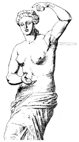 The consensus of art admirers, which is almost, though not quite, universal, sees in this marble the great mother-goddess, das ewig Weibliche, idealized femininity, the goddess of beauty and love, whom the Greeks called Aphrodite and the Romans Venus.{23}