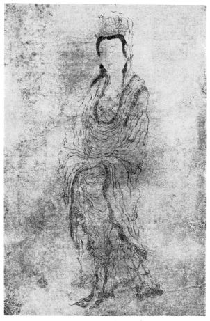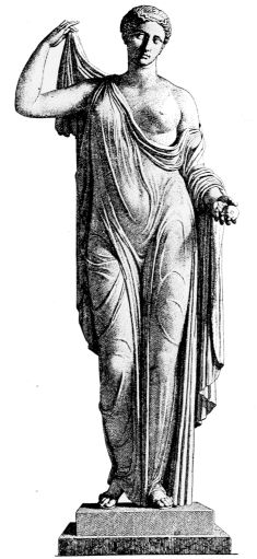 The goddess (if we may so call her) stands before us erect in queenly dignity. Her dress is falling down leaving the upper body entirely uncovered, and yet in spite of the nudity of the figure we are struck with its unparalleled purity and nobility of expression.