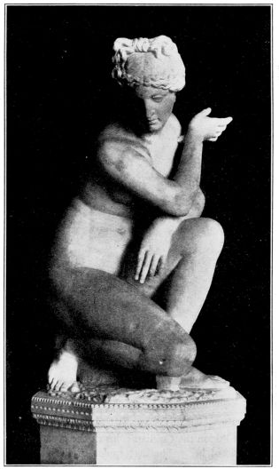 There is nothing frivolous about her, no coquetry, nothing amorous. Her eyes betray not the slightest touch of a sensual emotion, not that sentimental moistness, τὸ ὑγρόν as the Greeks called it, and thereby the artist succeeded in transfiguring naked beauty by a self-possessed chastity unrivaled in the art of statuary.