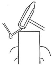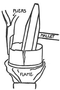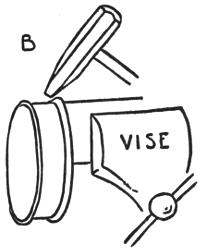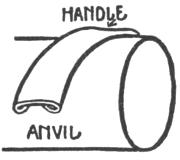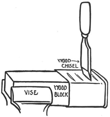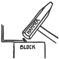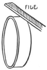 When the tool is filed into shape, heat the end again to a dull red and plunge it quickly in a pail of water several times until it is entirely cold. The tool is then ready for use.
