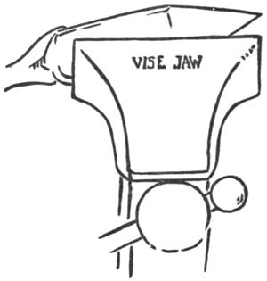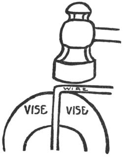 Making a Hoe Scraper.—A hoe scraper may be made from a cheap screw driver, such as those obtainable from the 5-and-10 cent stores. The end of the screw driver that is applied to the screw is heated red hot (a dull red). It is then placed quickly between the jaws of a vise so that the jaws grasp it about ½ inch from the end and before the steel has time to cool, it is bent over like a hoe, see Fig. 97.