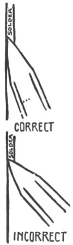 The beginner should be in no wise discouraged if this is so, for there is a certain knack in soldering neatly and this is only acquired by experience and by closely observing the simple rules governing the operation.