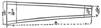 A sliding door is made from a flat sheet of tin, this door sliding between two folded strips of tin which are soldered to the framework of the lantern. Three pieces of glass are used for the lantern, as these are held in place by small pieces of tin folded at an angle, one part of which rests against the glass and the other part is soldered to the tin work of the lantern. These pieces are put in place as each piece of glass is placed in the lantern, one at the top and the other at the bottom of each piece of glass.