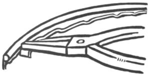 The hoe scraper is a very simple tool to use. The cutting edge is simply dragged with slight pressure over the solder to be removed, and will remove a little solder each time it is dragged over it. This tool may be sharpened easily with a smooth file or on a grindstone when it becomes dull.