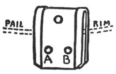 Lugs are riveted to the side of the can as described in making a pail in Chapter IX, page 100. A series of small holes are punched in a triangular formation in such a manner that they will be immediately back of the spout when this is soldered in place.