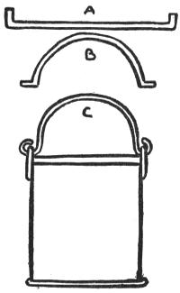 Boiling or Cooking Pails.—The boiling or cooking pails are made in the same manner as the pails described in Chapter IX, page 100. Care should be taken to use only rolled rim or locked seam pails for any utensil that is to go over a fire.