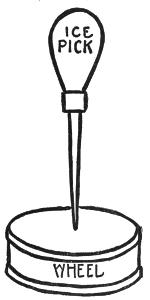 At least two vent holes should be punched or bored in all drum-like structures employed about the toys, one hole at the top to admit air and another hole at the bottom to allow the water or lye solution to escape. These vent holes are particularly necessary in wheels that are made from cans, see Fig. 98.