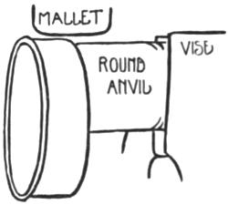 | TURNING OVER EDGES ON ROUND TRAYS—USING THE FORMING MALLET—MAKING AN ASH TRAY AND MATCH BOX HOLDER[14] | ||