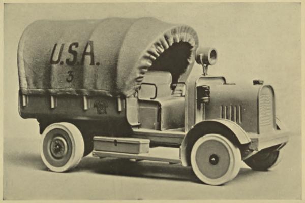 Do not use too many colors on one toy, but try to get a pleasing effect with two or three colors that look well together. For instance, a truck may be[209] painted an olive green or khaki color over its entire surface, excepting the front of the radiator which should be painted with silver paint.