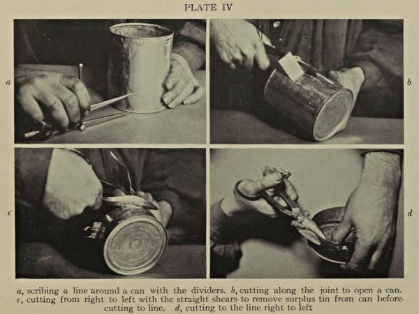 “Some old French hospital beds found on the salvage heap were quickly converted into work benches. It was then that the tin can ceased to be a thing to be burned and buried and came into its own.