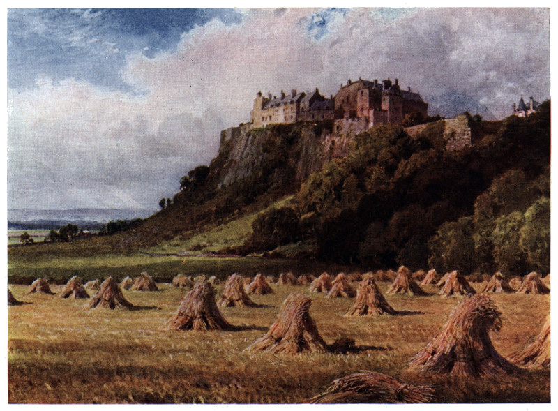 The history of Stirling reaches back beyond all records. Long before Edinburgh had attained its position as capital of the kingdom, while it was still but a Border fortress, liable to be taken and retaken as English or Scots extended their territory, Stirling was one of the strongholds of the country. From time immemorial some fortress had stood on this impregnable position.{18} In 1124 Alexander I. died here, so that it must then have been a fortress-palace, and in 1304 the castle held out for three months against Edward I. of England. After it was taken it remained in the possession of England until the Battle of Bannockburn, and Bannockburn lies only about three miles from Stirling. Even the supine Edward II. wended his way so far north with the object of retaining such a desirable place. James III. was born here, and probably James IV. also, while James V., the hero of The Lady of the Lake, was crowned in the parish church as a toddling child of two. His much-discussed daughter, Queen Mary, passed the years of her childhood at the castle. Her little son James, who was destined to unite the two kingdoms, was baptized at the castle with tremendous ceremony, while his father, Darnley, sulked apart, and refused to take his proper position. Here James VI. and I. spent mainly the first thirteen years of his life, under the tutelage of the scholar George Buchanan, and it was only when he became King of England that Stirling ceased to be a royal residence.