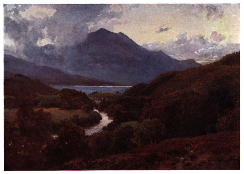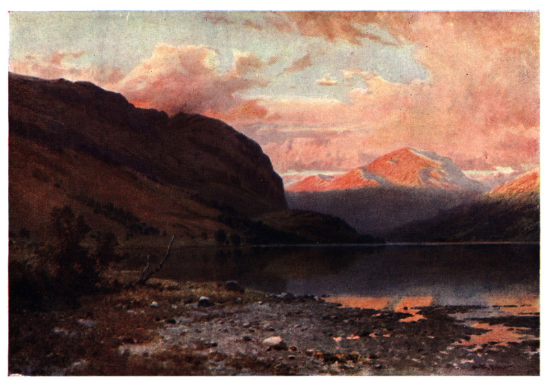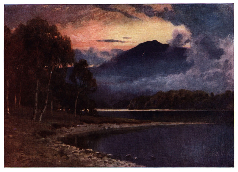 With Loch Katrine the scenes identified with The Lady of the Lake come to an end. The road to Loch Lomond passes over a wild, rough heath, in strong contrast to the wooded loveliness of the eastern end of Loch Katrine, but quite as attractive to some natures, especially when the soft grey clouds lie low and the russets and browns of the bracken and heather replace the rich glory of its purple robe. It was hereabouts that the Wordsworths, when returning to Lomond, were greeted by two Highland women, who said in a friendly way: “What! you are stepping westward”—a simple sentence which gave Wordsworth the inspiration for the poem which he wrote long afterwards beginning with the same words.