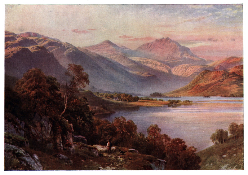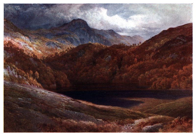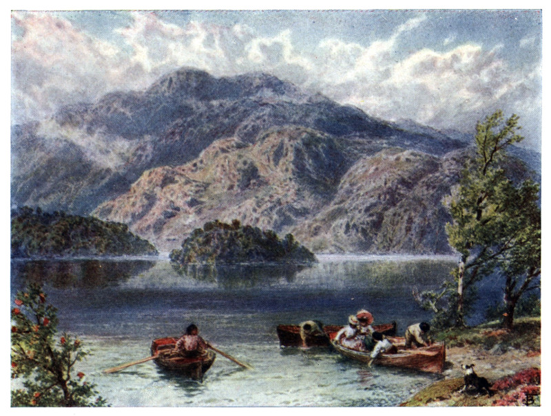 It has been suggested that the name of Loch Katrine arose from the hordes of robbers, or caterans, who infested its shores. If this be so, the name has been softened into something much more appropriate to the loveliness of the scenery, which is at its best at the east end. The Wordsworth party, indeed, coming from the other end, were at first disappointed. As the{46} only means of transit was by a small row-boat, Coleridge was afraid of the cold and walked along the northern shore from Glengyle, though not, of course, on the well-made-up road which runs part of the way at present. Wordsworth himself slept in the bottom of the boat, which they had procured with much difficulty, and told his sister to awake him if anything worth seeing occurred. It was not until they nearly reached the eastern end that she did this, though then she confessed that what they saw was “the perfection of loveliness and beauty.”
