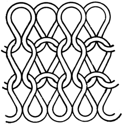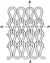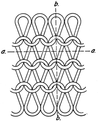 15It may be well to state here in passing, that all textile fibres have more or less flexibility or resiliency, and while this characteristic is infinitely small in any single fibre or hair, it is quite appreciable when there are hundreds of fibres grouped together and twisted into a yarn. This is the reason for the elasticity or stretch in knitted fabrics.