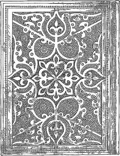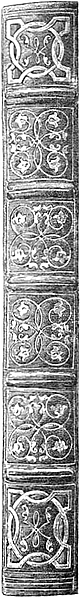 [2] Wir behalten diese in der Wissenschaft einmal eingeführte Bezeichnung bei, obwohl sie nicht ganz zutreffend ist. Unter Mönchsbänden pflegt man sonst auch wohl die gewöhnlichen Leder- und Pergamentbände des späteren Mittelalters zu verstehen, die von Mönchen für die Klosterbibliotheken gefertigt wurden.