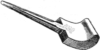 Der handwerksmäßige Betrieb der Buchbinderei begann naturgemäß erst mit der Erfindung des Buchdruckes. Die gedruckten Bogen kamen, wie es noch heute der Fall ist, roh (in albis) zum Buchbinder. Da man die Glättpresse nicht kannte, mußte der Buchbinder zunächst das durch den Druck rauh gewordene Papier glätten. Er bediente sich dazu des »Schlaghammers«. Der technische Ausdruck für diese Vorarbeit war: Aus der Lage schlagen oder Aus dem Falz schlagen. Von der Mitte beginnend wurde die Lage Schlag an Schlag nach dem Rande zu behandelt. Dadurch setzte sich der Druck und das in der Mitte stärkere (Bütten-) Papier wurde kräftig zusammengeschlagen und eine gleichmäßigere Stärke erzielt. Der eiserne Schlaghammer hatte bis zu zwölf Pfund[8] Gewicht. Als Unterlage für die Papierlage diente ein Steinblock, dessen obere Fläche geschliffen war. In Ermangelung dessen benützte man wohl auch Gußplatten, die in einem Holzklotz eingelassen waren. Noch heute sind Schlaghammer und Schlagstein vielfach angewendete Werkzeuge, wenngleich sie durch die glatten und fest satinierten Maschinenpapiere und durch zweckmäßige Maschinen fast ganz entbehrlich geworden sind.