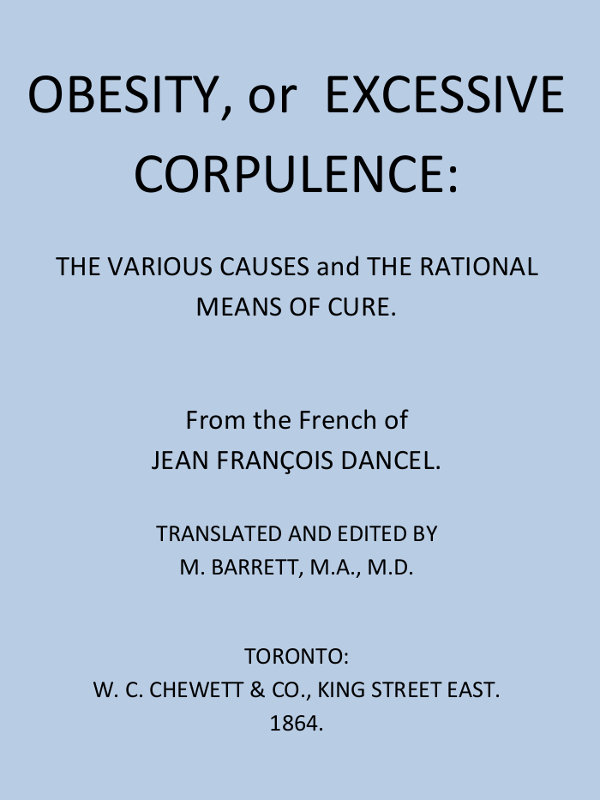Towards the latter end of 1850, the wife of Dr. Pecquet, of Paris, purchased my work on Obesity. Having read it, she spoke to her husband about it, who said that, like most medical men, he was persuaded that the only way to reduce corpulency, is to eat less than the system demands.