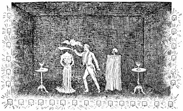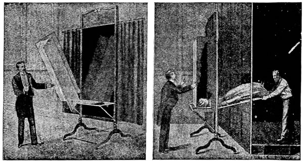 To conjure ghosts has always been the highest ambition of performers of magical tricks, and we know that the magic lantern has been used for this purpose since mediæval days, but modern necromancy has been brought to perfection by Robertson and Pepper, through the invention of a simple contrivance, known under the name of Pepper’s ghost, by which impalpable specters become plainly visible to the astonished eyes of the spectators.