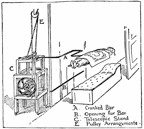 “The illusion is based on the movements of the room proper. During the entire exhibition the swing is practically stationary, while the room rotates about the suspending bar. At the beginning of operations the swing may be given a slight push; the operators outside the room then begin to swing the room itself, which is really a large box journaled on the swing bar, starting {xxi} it off to correspond with the movements of the swing. They swing it back and forth, increasing the arc through which it moves until it goes so far as to make a complete rotation. The operatives do this without special machinery, taking hold of the sides and corners of the box or ‘room.’ At this time the people in the swing imagine that the room is stationary while they are whirling through space. After keeping this up for some time, the movement is brought gradually to a stop, a sufficient number of back and forth swings being given at the finale to carry out the illusion to the end.