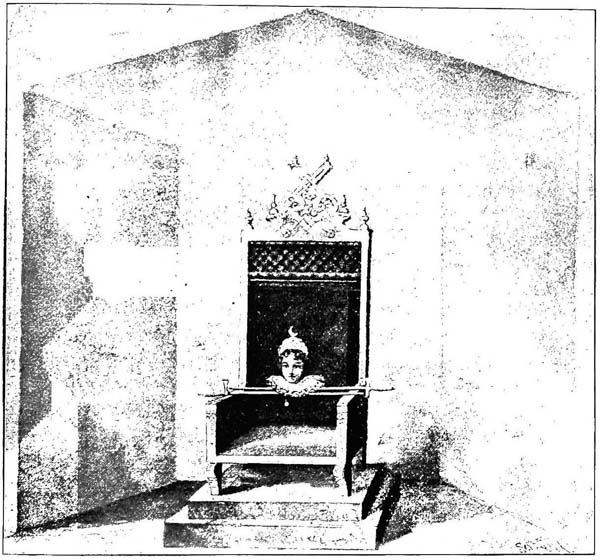 “The room is as completely furnished as possible, everything being, of course, fastened in place. What is apparently a kerosene lamp stands on a table, near at hand. It is securely fastened to the table, which in its turn is fastened to the floor, and the light is supplied by a small incandescent lamp within the chimney, but concealed by the shade. The visitor never imagines that it is an electric lamp, and naturally thinks that it would be impossible for a kerosene lamp to be inverted without disaster, so that this adds to the deception materially. The same is to be said of the pictures hanging on the {xxiii} wall, of the cupboard full of chinaware, of the chair with a hat on it, and of the baby carriage. All contribute to the mystification. Even though one is informed of the secret before entering the swing, the deception is said to be so complete that passengers involuntarily seize the arms of the seats to avoid being precipitated below.”