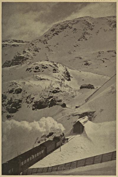 At the end of the long Molde Fjord is the little village of Næs, the starting point for the Romsdal-Gudbrandsdal route. No one who is not a stick or a lump of rock can take this trip without feeling his emotions stirred to their very foundations. There are few places in the world where nature has so unsparingly lavished her art as here. As if the diversity of the scenes were not enough in itself to hold our attention, nature provides an infinite variety of lighting effects. Fleecy clouds play about the mountain tops and then give way to full sunlight. A fog rolls up and curls around the Romsdalshorn, soon to dissolve into nothingness. A heavy curtain of clouds appears most unexpectedly, and the wildest thunder pounds and rolls and crackles through the valley to the accompaniment of pattering hail. We have hardly found shelter when all is over. The sun[294] seems to shine twice as brightly as before, and a few discontented mutterings in the distance show whither the storm is retreating. All this in itself would be inspiring, yet the scenery needs no assistance in producing a feeling of reverence and awe.