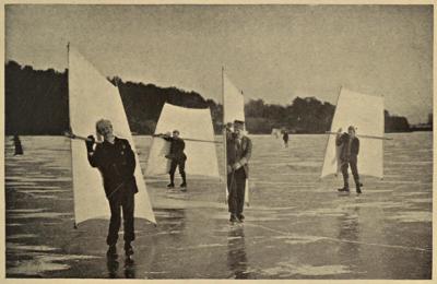 A more scientific, if less poetic person, who visited the northland was Vanniman, the American engineer, who was with Wellman when he made his unsuccessful attempt to reach the North Pole by airship. Vanniman perhaps neglected the beauties of nature for the more sordidly practical occupation of inventing a sun compass. The principle of this instrument is most interesting. Reasoning that at the precise moment of midnight the sun is due north, he “constructed a clock the hour hand of which traveled in the opposite direction to the sun, so that, on being pointed at the midnight sun and set going, it continued to point due north.”