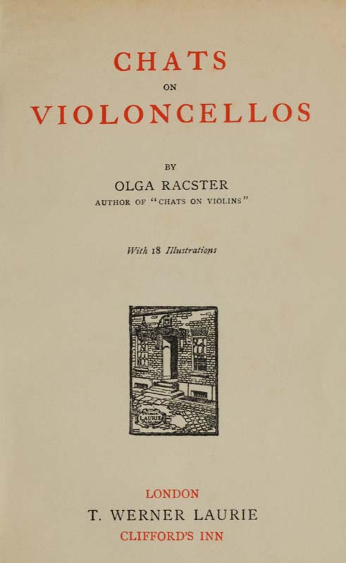 VIOLONCELLO, Chats on the (Olga Racster). 3s. 6d. net.