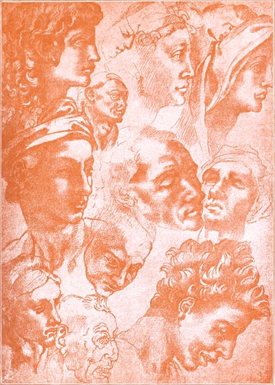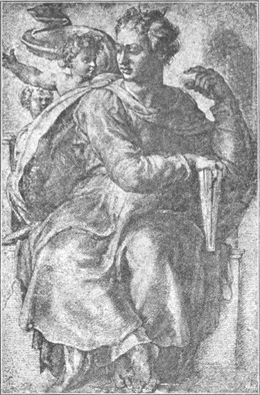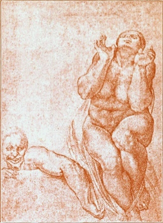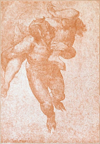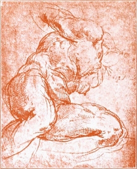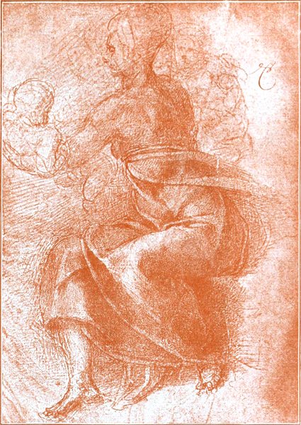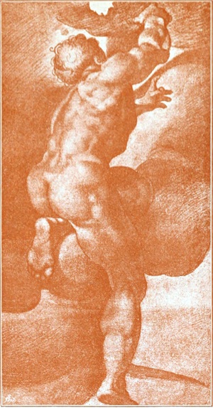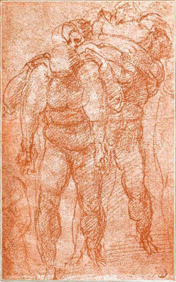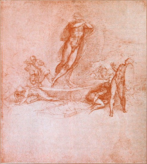 hinabträgt. Rötelzeichnung nach Michelangelos
