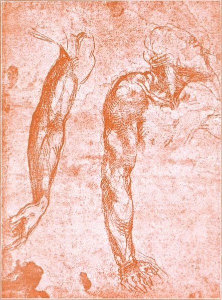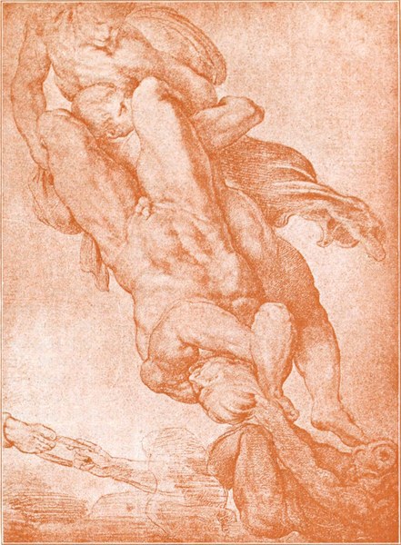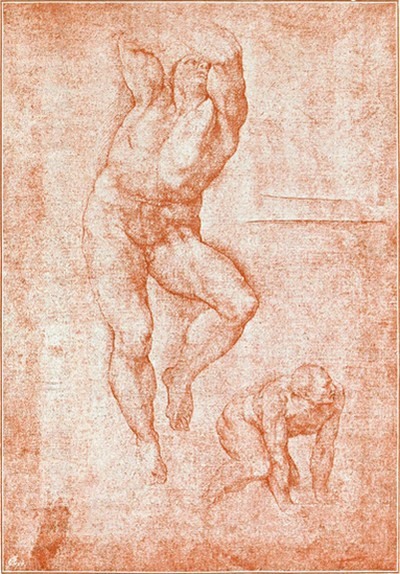herabgezogen. Kreidezeichnung nach Michelangelos