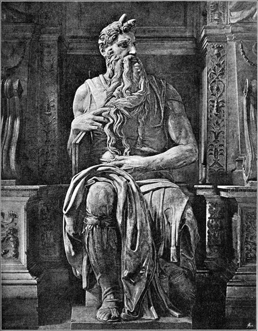 Eine Quelle der Belehrung waren für Michelangelo, wie für das ganze damalige Künstlergeschlecht von Florenz, die in den zwanziger Jahren des XV. Jahrhunderts gemalten Fresken des Masaccio in der Brancacci-Kapelle der Kirche del Carmine. Michelangelo zeichnete die bewunderten Vorbilder mit größerem Geschick nach, als irgend einer der anderen, die sich dem gleichen Studium hingaben. Der Neid erwachte und die Feindseligkeit der Neider wurde gesteigert durch Michelangelos Fehler, sich über die schlechten Zeichnungen seiner Genossen lustig zu machen. Eines Tages versetzte ihm einer der jungen Leute, welche in der Brancacci-Kapelle zeichneten, Pietro Torrigiano, der auch Michelangelos Mitschüler im Garten von S. Marco war, einen so heftigen Faustschlag ins Gesicht, daß er ihm das Nasenbein zertrümmerte. Torrigiano floh nach dieser That und wurde aus Florenz verbannt; Michelangelo blieb zeitlebens entstellt.