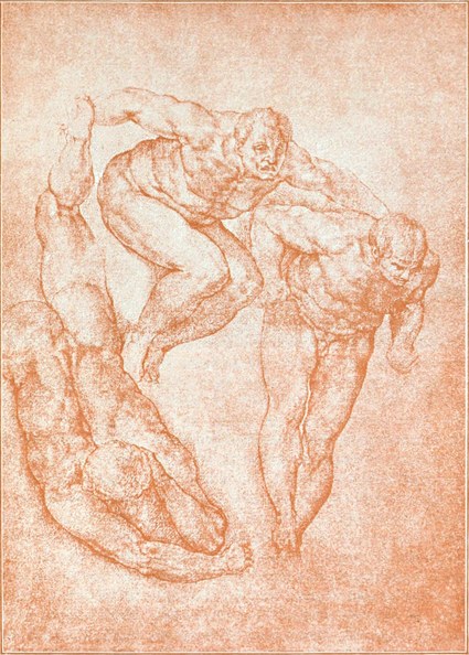 Kreidezeichnung nach Michelangelos Jüngstem Gericht.