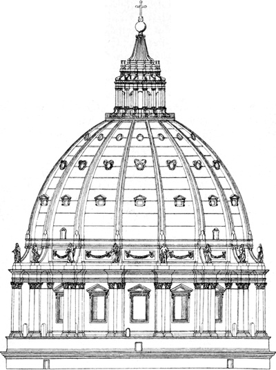 Michelangelo dachte wohl bisweilen daran, seine Tage in der Heimat zu beschließen. Der Herzog Cosimo I von Florenz versuchte wiederholt und in der liebenswürdigsten Weise, ihn zur Übersiedelung zu bewegen. Schließlich hätten weder die Beschwerden des Greisenalters, noch auch die Unzufriedenheit mit den politischen Verhältnissen von Florenz ihn an der Rückkehr in die Heimat verhindert; aber der Bau von St. Peter war ein Band, das ihn unlösbar in Rom festhielt. Es erschien ihm als eine schwere Sünde diesen Bau, zu verlassen, an dem er nicht um irdischen Lohnes willen — er hatte jede Art von Gehalt oder Entschädigung abgelehnt, als er die Anstellung annahm —, sondern aus Frömmigkeit und Liebe zu Gott wirkte. So widmete er dem Petersdom den letzten Rest seiner Kräfte.