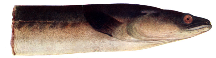 I should like to draw the special attention of the reader to the Frontispiece (Plate I.), which is very beautifully executed, and is, I believe, the first coloured drawing yet published showing the difference between the adult “silver” eel and the more abundant immature “yellow” eel—sometimes called the “frogmouthed eel.” The original drawings were prepared for me through the kindness of Dr. Petersen, of Copenhagen, who is the discoverer of many interesting facts about the{vi} common eel, and is director of the Danish Biological Laboratory.