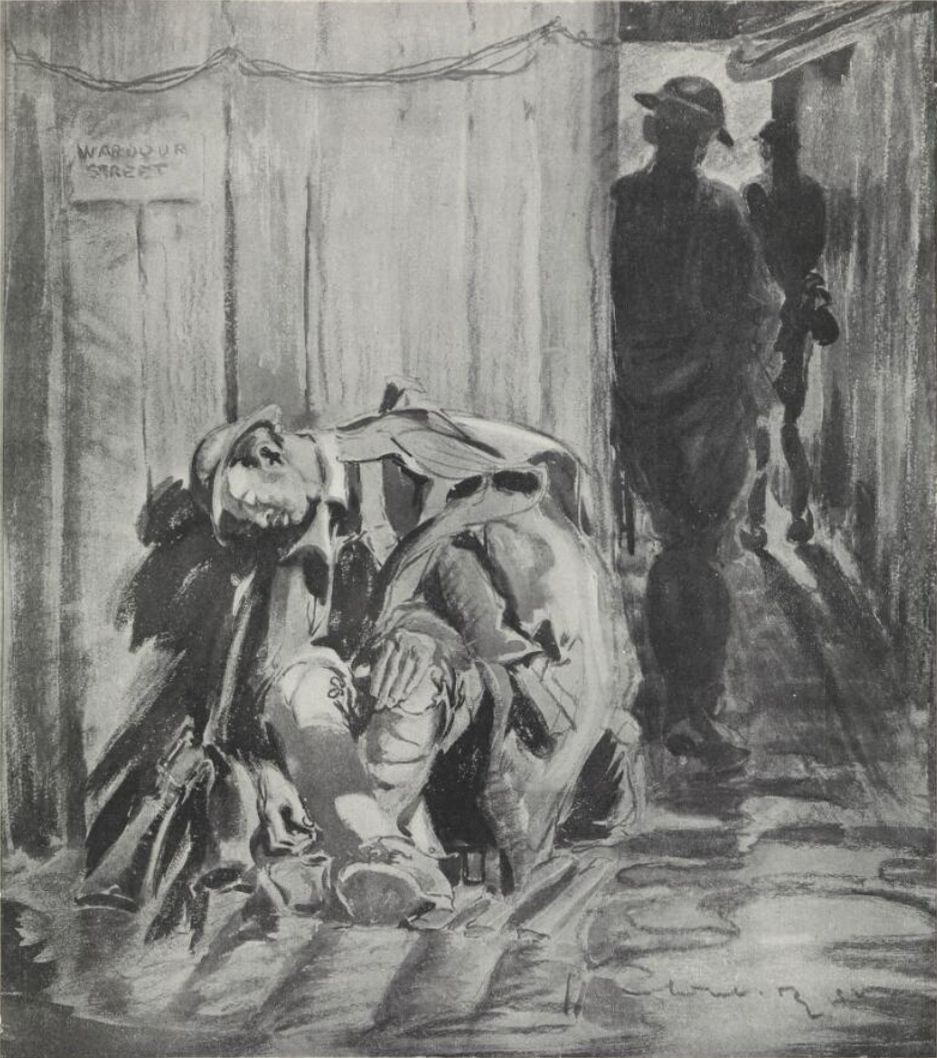 “‘M——’ was very liberal to them with Hurley’s whiskey—and they needed it. This sort of need for a drink is something that bears no relationship to anything you and I could ever know in a nicely regulated civilian life. It is of a world which the temperance die-hard has never envisaged, and in which the drink does nothing more criminal than make man more stoical of conditions that in themselves are cruel enough to justify him in committing the seven cardinal sins if that would procure alleviation of those conditions.”