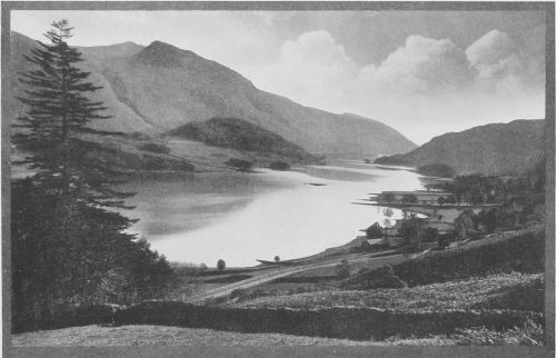 The picturesque hamlet itself contains little of interest beyond perhaps the fact that the palatial but comfortable Rothay Hotel was originally built by the late Lord Cadogan, and was his home for many years. After the church, no doubt Dove Cottage claims attention. It was here that Wordsworth lived from 1799 to 1808, and to it he brought his bride, Mary Hutchinson, in 1802. De Quincey also occupied it for many years after Wordsworth left it; indeed it may safely be said that no other cottage has been visited by so many brilliant literary and artistic people of bygone times. The names of Sir Walter Scott, the Coleridges, Southey, Charles Lamb, Humphrey Davy, Charles Lloyd, Ruskin, Christopher North, Matthew Arnold and many others rise unbidden to the mind as one stands at the back door and gazes upwards to the summer house above the little rock-garden which Wordsworth designed, aided by his gentle sister Dorothy. This little natural rock-garden has been immortalized in the following farewell lines, written when the poet was leaving it for an absence of two months—his honeymoon:—
