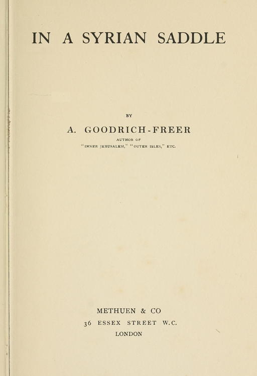 Life is, in many respects, made very easy in the Holy Land. You can return home in the afternoon with no anxious forebodings as to how much waste of time is awaiting you in the shape of cards and notes on the hall table; you may wear clothes for covering, you may eat for nourishment; without taking thought for fashion in the one case, or of competition with your neighbour's cook or gardener in the other. But—according to our Occidental standards—you cannot consistently indulge any taste you may happen to have for being grand. Your attempts at a London, or shall we say a suburban, drawing-room, your "At Home" days, your Europeanised service, the dress of your {2} womankind—distantly reminiscent of the ladies' papers and of Answers to Correspondents—are certain to be complicated by some contretemps provocative only of mirth. The Oriental himself makes no attempt at being consistent. When you arrive at his house he spreads a priceless carpet, but omits to remove last week's dust from off the furniture; he gives you perfumed coffee, which is like a dream of Olympus, and his servant brings you a piece of bread in his fingers.