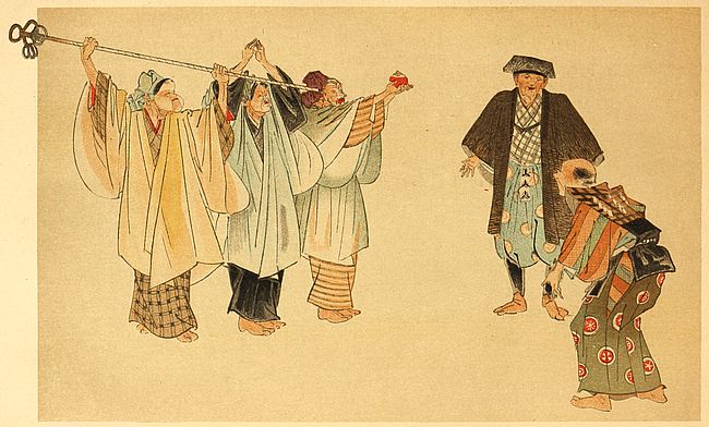 A foreign country for most travellers is very like a theatre. They arrive in holiday mood, resolving to be pleased, since otherwise their judgment in choosing that country rather than another, their faculty of appreciating what so many have proclaimed delectable, might seem at fault. Should their choice have fallen on Japan, be sure that eulogistic notices from the pens of Sir Edwin Arnold and M. Pierre Loti have prepared them to enjoy the daintiest of comediettas. They reach the enchanted shore. They pass swiftly from one aspect of fairyland to another. Nothing happens to shake their preconceived conviction that in the Land of the Rising Sun Nature began and Art completed a yellow paradise. They do not heed the jeremiads of resident aliens, nor the bitter cry of outcast professors, who gather thorns where the tourist is dazzled by cherry-blossom. The picturesque unreality of common things abets illusion. Surely these dolls’ houses of wood and paper, these canopies of rosy bloom and curtains of purple wistaria, the gigantic cryptomeria, the tentacular pines, the azure inland sea and snow-streaked Fuji itself—surely all these compose a superb mise en scène for poetic[4] comedy! And when “the crowd” enters, a smiling crowd of straw-sandalled rickshaw-runners, of kneeling tea-house girls, and shaven babies, arrayed like bright-winged butterflies, churlish indeed were the spectator who should refuse to smile back and cheer with the best. Then consider the privileges which he may enjoy in that admirably arranged theatre. Were he in his own country, the footlights divide him for a few hours at most from actors whose privacy, however coveted, he may seldom hope to invade. But on Japanese soil he may often obtain, by fee or favour, like the stage-struck noble of Molière’s and Shakespeare’s time, familiar acquaintance with performance and performers. The latter are, on the stage, his puppets; off the stage, his friends. Indeed, he confounds the two, and ends by treating them with affectionate condescension. This attitude, which he half-involuntarily assumes from an ever-present consciousness of superior civilisation (as he considers it), deceives only himself. The polite but thoughtful patriot, perceiving that his temples are regarded as bric-à-brac, his race as a race of ingenious marionettes, protests in vain against the unwelcome flattery of surprised admirers. “To this kind of people,” wrote Mr. Fukai, one of the ablest journalists in Tōkyō, “our country is simply a play-ground for globe-trotters, our people a band of cheerful, merry playfellows. Painstaking inquiries are made about Japanese curios and objects of art—sometimes important, no doubt, but sometimes ridiculously trivial—while the investigation of such subjects as the ethical life, the social and political institutions, are far too much neglected. The history of the nation is ignored, and our recent progress is supposed to be[5] wholly owing to a miraculous touch of Western civilisation.” But who is to remedy this unfortunate susceptibility on the part of foreigners? The foreign employé has his work to do—diplomatic, professional, or commercial; the native is in no particular hurry to court the esteem of outsiders, being quite contented with his own high estimate of himself. Must it always be an officer “on short leave,” or a journalist in a hurry, who undertakes to record superficial impressions of a passing spectacle? At least, it is no use reporting from the stalls what the casual playgoer imagines he has seen, unless his report be confirmed and controlled by those who move in the mysterious world “behind the scenes,” where the drama of popular existence is more adequately observed and to a great extent directed. Happily, the judicious inquirer has only to choose between competent guides, whose eyes are no longer confused by the glimmer of dancing lanterns. Let us pass behind the scenes, and discover, if we can, what sort of piece is being rehearsed—what mode of action the performers affect. If we lose some illusions, we may gain a profitable glimpse of decorously veiled truths.