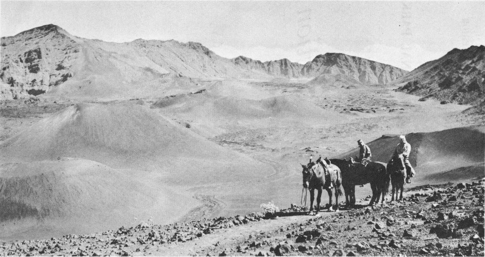 It would seem that the crater so high in the sky, so remote in location, so difficult in access, so desolate in appearance, so dread in origin, should have been shunned by the early native. Quite the contrary, many marks of frequent and varied use may be discovered in the crater. A trail through it connected the busy sites on West Maui and the isthmus with Kaupo and Hana near the eastern shore. This direct route avoided the wet heavily forested northern slopes of the mountain as well as the precipitous, arid, rough terrain on the southwest. It was easily traversed, in spite of the climb involved.