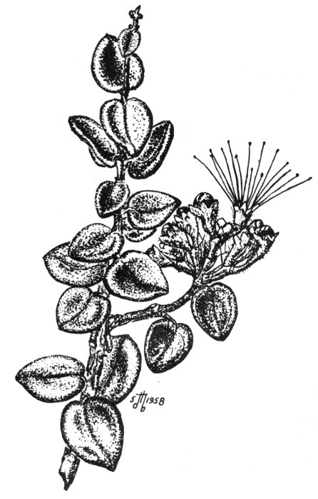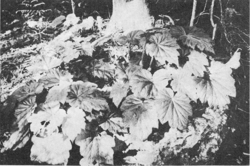19. Paliku is very different from the desert wastes in the other parts of the crater. Lush grass and ferns, overhanging forest trees, and a verdant cover on a towering pali result from abundant clouds pushed by the trade winds over the east wall. AKALA, the giant Hawaiian raspberry, ripens abundantly back of the cabins in July. It is excellent for pie, conserves, or dessert. Native Hawaiian trees include: MAMANE, far larger than the scrubby growth in the crater; OHIA, with gray-green leaves and red lehua flowers; KOLEA, with thick magnolia-like leaves four inches long; OLAPA, with leaves that tremble in the slightest breeze, like those of quaking aspen. The conifer above the Ranger Cabin is a cryptomeria, a Japanese evergreen planted early in this century.