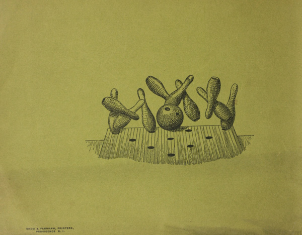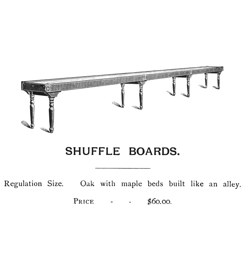We are prepared to furnish balls, pins, or any other supplies, all of the best obtainable quality. Our alley balls are turned from the best lignum vitæ and we make our pins of first quality Rock Maple, to the form prescribed by the Bowling League.