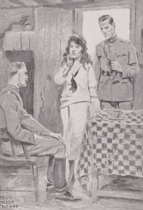 “Captain de la Tour!” she exclaimed in vivid recollection, and as the officer looked at her in surprise she went eagerly on, “You don’t remember me? Of course not—how could you? I’m Michelle’s friend, Lucy Gordon. I was in your mother’s house when you came into Château-Plessis as a spy. For a moment I couldn’t remember. Oh, tell me, how is Michelle?”