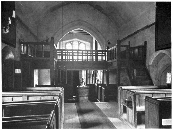 Putney Church, standing with its churchyard actually on the river bank, was almost wholly rebuilt about 1856, the exterior disclosing walls built of what was once white brick, reduced now to a subdued[260] neutral tint. The old tower is left, and some few small and late and much-battered brasses, now preserved on the walls of a little north-eastern chancel chapel, which is a survival from an earlier building, and has a fine, though small, vaulted ceiling.