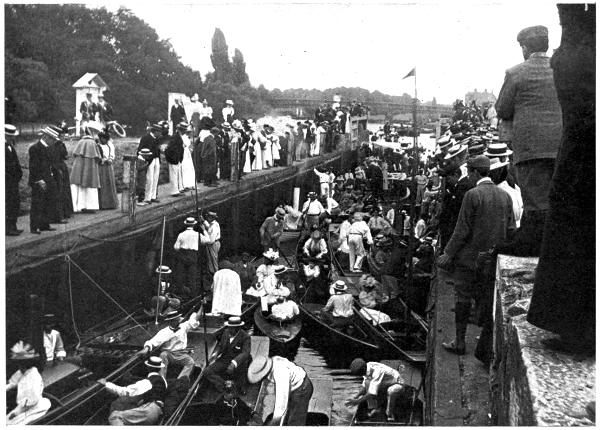 In these days of pageants, the picturesque wooded grounds of Fulham Palace have witnessed some striking reconstructions of the brave and the terrible days of old. There was, for example, the Church Pageant, in which numbers of participants enjoyed themselves immensely as in a long bout of private theatricals, all in aid of some deserving charity. The charity did not, it would appear, benefit after all, for those doings resulted in a deficit, and a Military Pageant was held the following year to make up the loss. What was done to abolish the loss that probably resulted from this is not within my knowledge.