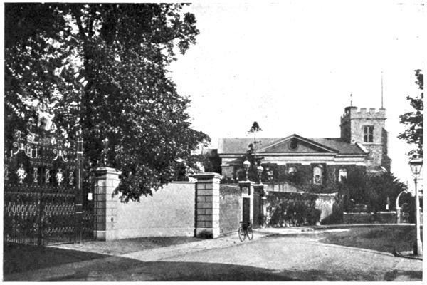 To speak of Barnes in these days of suburban expansion as a “village” may at the first mention appear to be unduly stretching a point, but although Suburbia spreads for miles in every direction, and although Barnes is completely enfolded by modern developments, the ancient village is still where it used to be. It is true that a frequent service of motor-omnibuses does by no means tend to the preservation of the old-time rural amenities of Barnes, nor do those who remember the Barnes of thirty or forty years ago welcome the sudden irruption of modern shops and flats opposite the old parish church; but very much of old Barnes is left embedded within these twentieth-century innovations; and while Barnes Common remains, it is not likely that the place will decline to the common characterless condition of an ordinary suburb. Of the original Barnes—the “Berne” of Domesday Book—the place owned by the canons of St. Paul’s, before the Reformation, nothing, of course, is left; and we may but dimly picture that rural riverside manor, then considered remote from London, with its great spicaria, or barns (the barns that were so much larger, or more numerous, than the usual type that they gave the place its name); but there is a half squalid, half quaint appearance in the narrow, winding streets and lanes that hints, not obscurely, of the eighteenth or even of the seventeenth century. The[255] church, too, although an examination of the interior proves it to have been, in common with most other once rural churches round London, swept almost entirely bare of ancient features, is picturesquely placed, and its sixteenth-century red-brick tower, partly clothed with ivy, looks venerable. There is little of interest within the church, beyond the somewhat[256] curiously-worded epitaph to a former parson, which deserves the tribute of quotation: