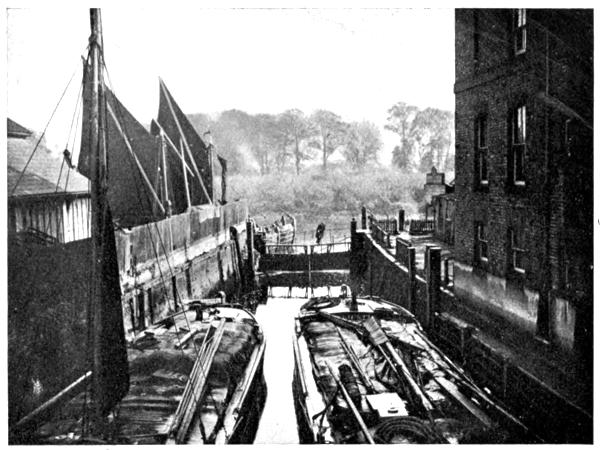 The neighbourhood is now one of remarkably striking contrasts. By the church stands the “Burlington Arms,” an old inn claiming a remote origin, early in the fifteenth century, and with obvious honesty, for the ancient oaken timbers remain to bear witness to the fact. It is a quite humble, but cosy, little inn, astonishingly dwarfed by a great towering fortress-like brewery at the back; as though Beer had withdrawn itself into a final stronghold, there to defend itself to the last vat. Opposite the inn and this Bung Castle stands a stately red-brick mansion of early in the eighteenth century, with fine wrought-iron garden-gates. Up the street are other fine old mansions, mingled with squalid streets; and round by the riverside is Chiswick Mall, with other noble houses of the olden times. Osiers are cut even to this day on Chiswick Eyot, the reedy island opposite.