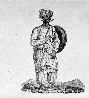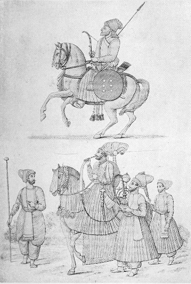 21. [A man riding his own horse was called Silahdār, ‘equipment-holder’; one riding a horse belonging to the State or to some one else was Bārgīr, ‘burden-taker’ (Irvine, Army of the Indian Moghuls, 37).]