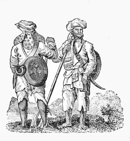 Of its Rajput population, the Bhattis, we have already given an outline in the general essay on the tribes.[22] Those which occupy the present limits of Jaisalmer retain their Hindu notions, though with some degree of laxity from their intercourse with the Muhammadans on the northern and western frontiers; while those which long occupied the north-east tracts, towards Phulra and the Gara, on becoming proselytes to Islam ceased to have either interest in or connexion with the parent State. The Bhatti has not, at present, the same martial reputation as the Rathor, Chauhan, or Sesodia, but he is deemed at least to equal if not surpass the Kachhwaha, or any of its kindred branches, Naruka or Shaikhavat. There are occasional instances of Bhatti intrepidity as daring as may be found amongst any other tribe; witness the feud between the chiefs of Pugal and Mandor. But this changes not the national characteristic as conventionally established; though were we to go back to the days of chivalry 1253and Prithiraj, we should select Achalesa Bhatti, one of the bravest of his champions, for the portrait of his race. The Bhatti Rajput, as to physical power, is not perhaps so athletic as the Rathor, or so tall as the Kachhwaha, but generally fairer than either, and possessing those Jewish features which Mr. Elphinstone remarked as characteristic of the Bikaner Rajputs. The Bhatti intermarries with all the families of Rajwara, though seldom with the Ranas of Mewar. The late Jagat Singh of Jaipur had five wives of this stock, and his posthumous son, real or reputed, has a Bhattiani for his mother.[23]