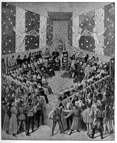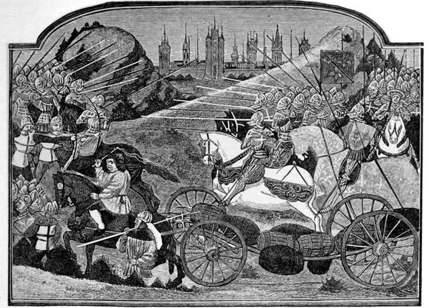 214. Philip the Good, son of Jean Sans-Peur, the Duke murdered at the Bridge of Montereau in 1418 by the Armagnac faction; he was consequently an ally of England. Anne, his sister, married John, Duke of Bedford. Efforts were constantly made by both sides to secure the sympathies of so powerful an ally; but after the death of his sister in 1432, the Duke’s attachment to the English cause waned; and in 1435, a week after the death of Bedford, he made peace with Charles VII., and signed the Treaty of Arras, which practically restored France to the King. He died in 1467, and was succeeded by his son Charles the Bold.