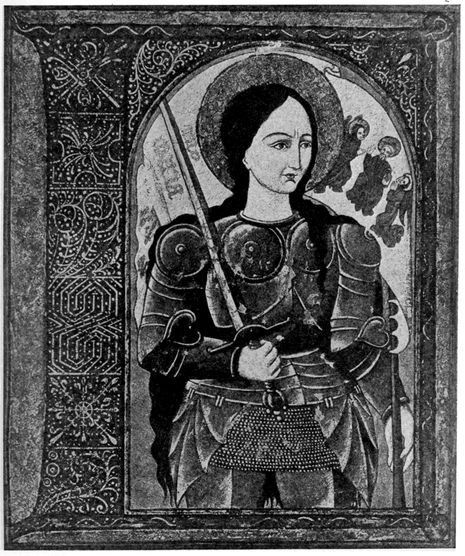 Sublime above all these loomed the Church and its tremendous message. And so, from current history and fable and folk-lore, Jeanne’s imagination was fed, while her soul was ready to receive any mandate which the Lord of all things might deign to signify. She was thirteen years old when the first message came to her. The Archangel Michael, as she states, appeared, and she was struck with great fear; but afterwards she longed xiifor his coming and his words. He admonished her to be pure and holy and religious, and she determined to be so. Later on St. Catherine (the Virgin) and St. Margaret appeared to her, and told her that the Lord ordered her to go into France and relieve Orleans. In her examination she tells these things with great particularity, meeting all questions as to age, size, voice, dress, language, and surroundings of the angels, with a simple directness which carries conviction of her absolute truthfulness.
